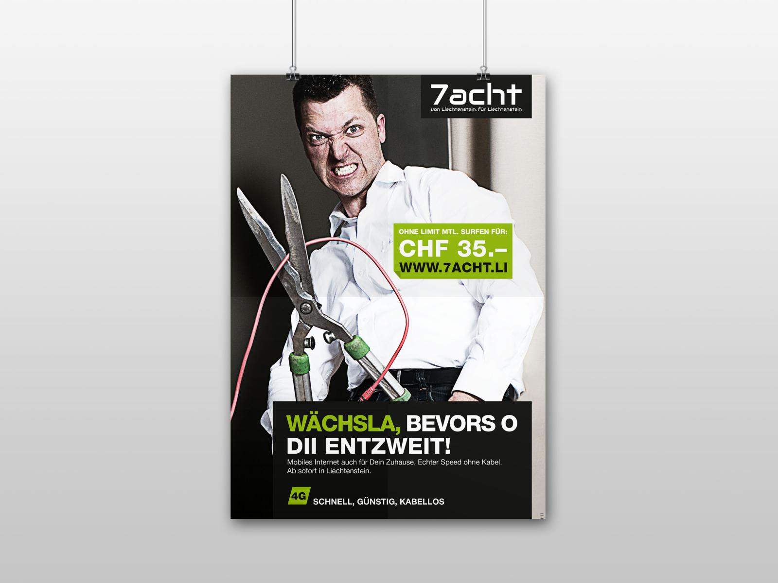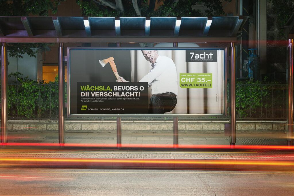 Invictus unterstützte 7acht im Rahmen ihrer Markteintrittskampagne für „mobiles Internet für Zuhause“. Die landesweite Printkampagne wurde von Invictus konzipiert und umgesetzt sowie die neue Unternehmensfarbe eingeführt. Weiterhin kreierten wir weitere Printmaterialien und entwickelten die neue Social-Media-Strategie. Unsere Agentur setzte regelmäßig Social-Media-Kampagnen sowie Community Management um.