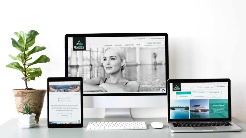 In einem gemeinsamen Workshop wurde mittels strategischer Beratung seitens INVICTUS neben der Gestaltung der Website für KÜHNE Pool und Wellness auch Content Marketing sowie Suchmaschinenoptimierung und eine Anpassung der verschiedenen Vertriebsunterlagen als zusätzliche Auftragspunkte beschlossen.