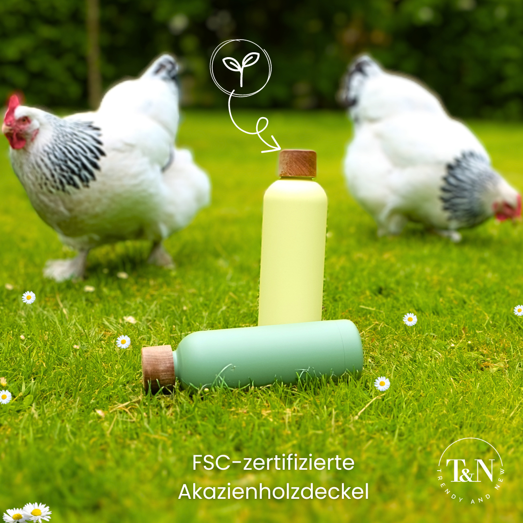 Das Start-Up trendyandnew sitzt in Berlin und bietet Produkte des täglichen Bedarfs an, mit welchen Sie unterstützen wollen den Plastikverbrauch im Haushalt zu reduzieren. Zum Angebot zählen Edelstahlflaschen mit Temperaturisolation und FSC-zertifizierten Akazienholzdeckeln sowie Glasflaschen etc.